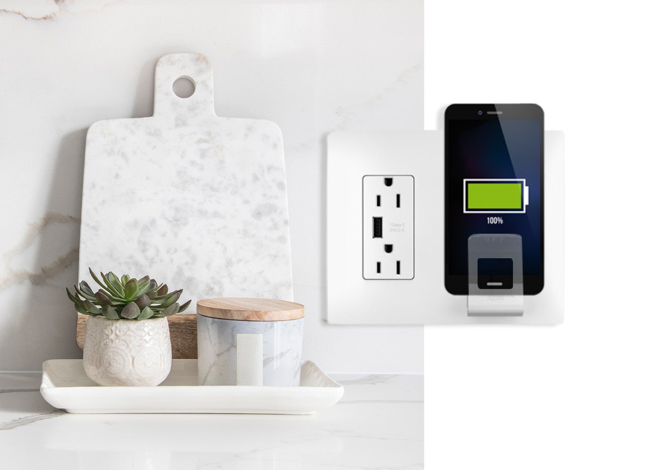 Say hello to clutter-free counters with the revolutionary radiant® in-wall wireless charging pad. Installs easily in place of a single-gang outlet, no special wiring required.
